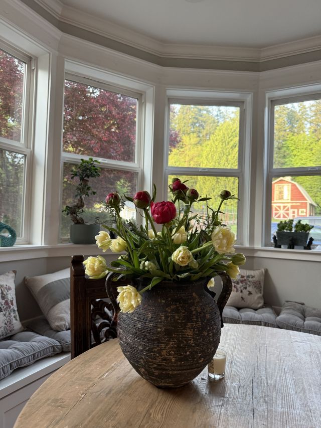 Sun, warmth, flowers. Vegetables and chicks that both seem to grow overnight each day. We haven't had such a beautiful spring in a long time. I'm in a between-books phase and have time for nature and animals. We even managed a short trip the Pacific Ocean.