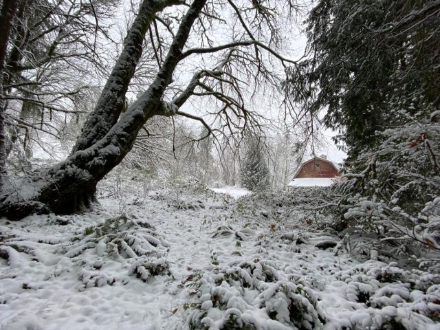According to that saying we are going to drown in a sea of flowers in May because it has been raining nonstop for weeks. But hey - at least our barn removal is almost done, although it took it's sweet time.