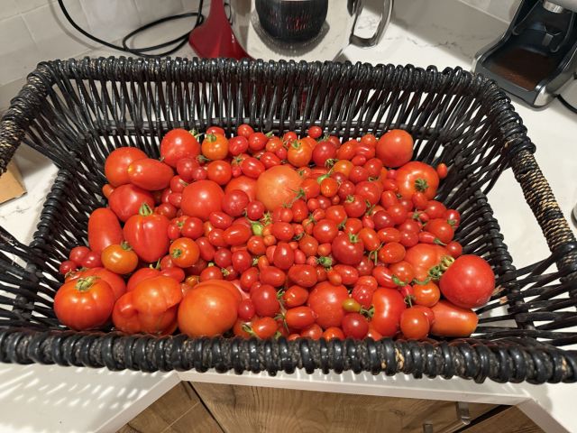 Barely back home, it's all about harvesting - does anyone need more tomateos or zucchinis?