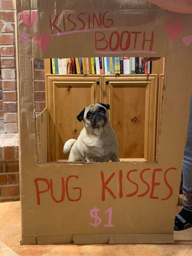1. Our two cute dogs just turned seven years old. I can't believe it, time truly flies. In the photo you can see Gatsby in his kissing booth on his birthday, where you could get a kiss from him for a dollar. Unfortunately he ran off before anyone could attempt it.
